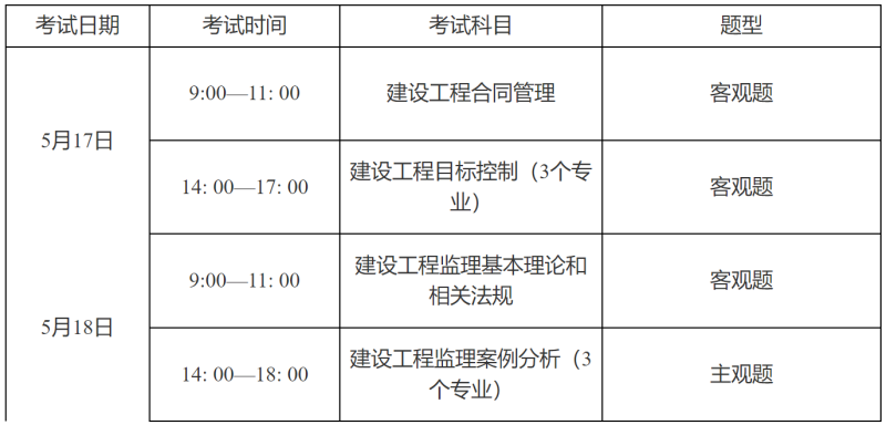 《建設(shè)工程監(jiān)理基本理論和相關(guān)法規(guī)》和《建設(shè)工程合同管理》為基礎(chǔ)科目;《建設(shè)工程目標(biāo)控制》和《建設(shè)工程監(jiān)理案例分析》為專業(yè)科目。專業(yè)類別分為土木建筑工程、交通運(yùn)輸工程和水利工程,報考人員可根據(jù)實(shí)際工作需要選報其一。