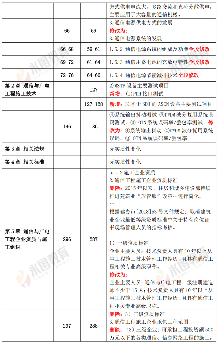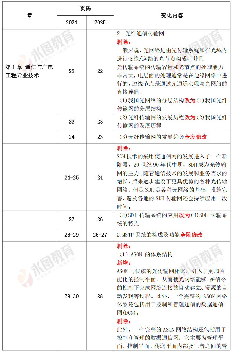 ?2025年一級建造師《通信與廣電工程管理與實(shí)務(wù)》新舊教材對比
