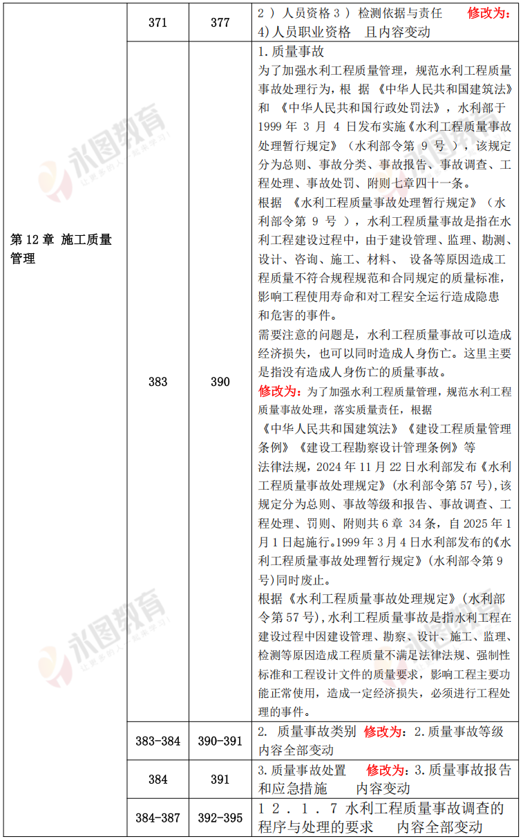 ?2025年一級建造師《水利水電工程管理與實務(wù)》新舊教材變化對比