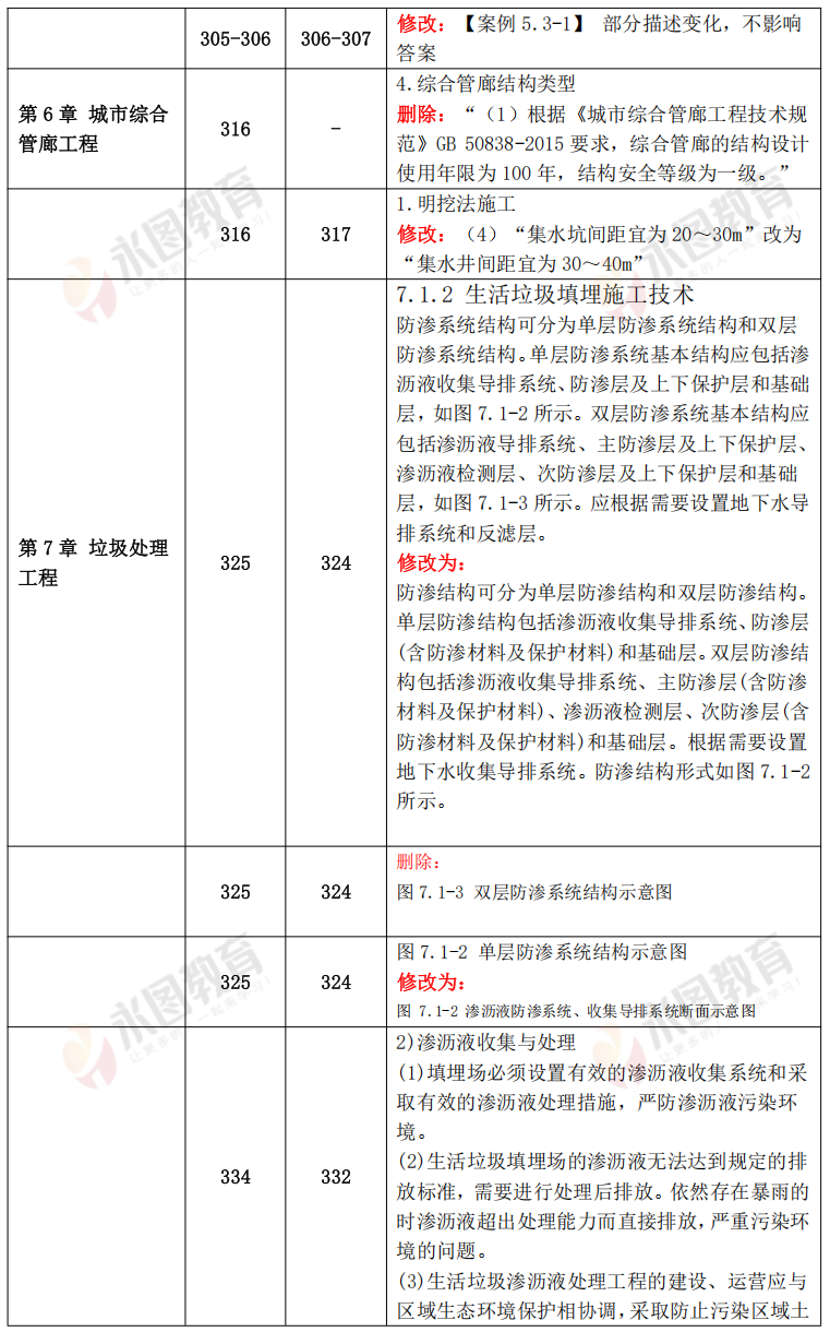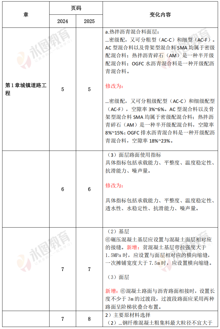 ?2025年一級建造師《市政公用工程管理與實務》新舊教材變化對比