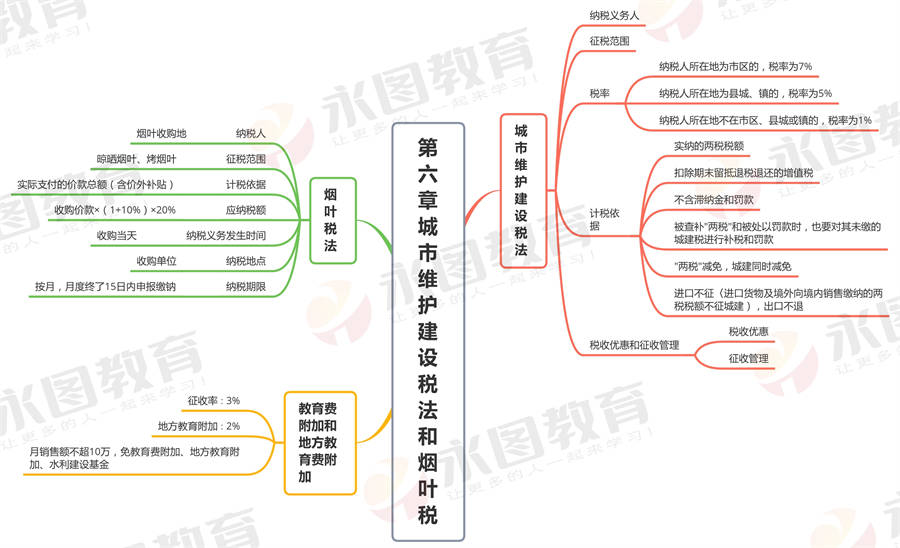 2023年注冊會計(jì)師《稅法》思維導(dǎo)圖:第六章 城市維護(hù)建設(shè)稅法和煙葉稅法。思維導(dǎo)圖在備考注冊會計(jì)師的過程中可謂是不可缺少的一個學(xué)習(xí)資料,前期利用思維導(dǎo)圖梳理知識點(diǎn),后期復(fù)習(xí)時利用思維導(dǎo)圖幫助自己查漏補(bǔ)缺,學(xué)習(xí)效率直線上升!