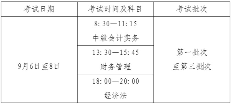 中級資格考試于2025年9月6日至8日舉行,共3個批次,各科目具體考試時間如下(考生具體考試時間以準(zhǔn)考證為準(zhǔn)):