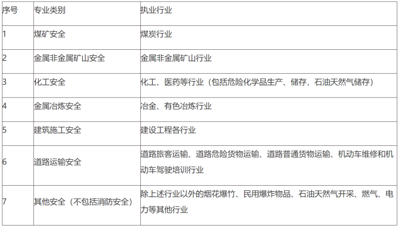 各專業(yè)類別注冊(cè)安全工程師執(zhí)業(yè)行業(yè)界定表