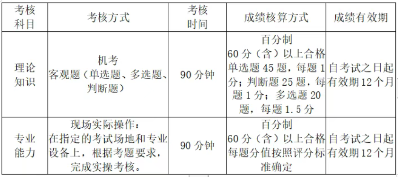 其中,理論知識(shí)和技能考核部分都是滿分100分,及格60分。