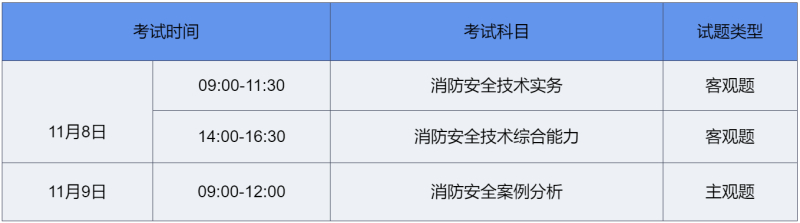一級(jí)注冊(cè)消防工程師資格考試設(shè)置“消防安全技術(shù)實(shí)務(wù)”(客觀題)、“消防安全技術(shù)綜合能力”(客觀題)和“消防安全案例分析”(主觀題)3個(gè)科目。參加全部3個(gè)科目考試(級(jí)別為考全科)的應(yīng)試人員須在連續(xù)3個(gè)考試年度內(nèi)通過(guò)應(yīng)試科目,參加2個(gè)科目考試(級(jí)別為免一科)的應(yīng)試人員須在連續(xù)2個(gè)考試年度內(nèi)通過(guò)應(yīng)試科目,方可取得資格證書(shū)。