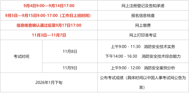 ?2025 年度一級注冊消防工程師資格考試江西考區(qū)考務(wù)工作正式開啟!9 月 4 日 9:00 至 9 月 14 日 17:00 進(jìn)行網(wǎng)上注冊登記及告知承諾,緊接著 9 月 5 日至 9 月 15 日 9:00 - 17:00(工作日)開展報(bào)名信息核查。信息核查確認(rèn)通過后,需在 9 月 17 日 17:00 前完成網(wǎng)上繳費(fèi)??荚噷⒂?11 月 8 日至 9 日舉行,考前一周即 11 月 3 日至 11 月 7 日可網(wǎng)上打印準(zhǔn)考證??荚囋O(shè)三科,成績滾動(dòng)管理。報(bào)考條件分考全科與免一科,對學(xué)歷、工作年限及專業(yè)有明確要求,想報(bào)考的朋友務(wù)必留意。