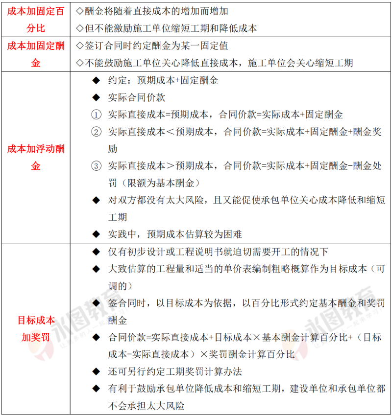 ①大多用于工期長、技術復雜、實施過程中發(fā)生各種不可預見因素較多的大型工程;