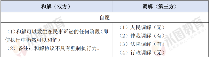 注意,調解涉及第三人,和解是雙方當事人內部的協議,涉及到兩方主體,和解不具有法律的強制執(zhí)行力。
