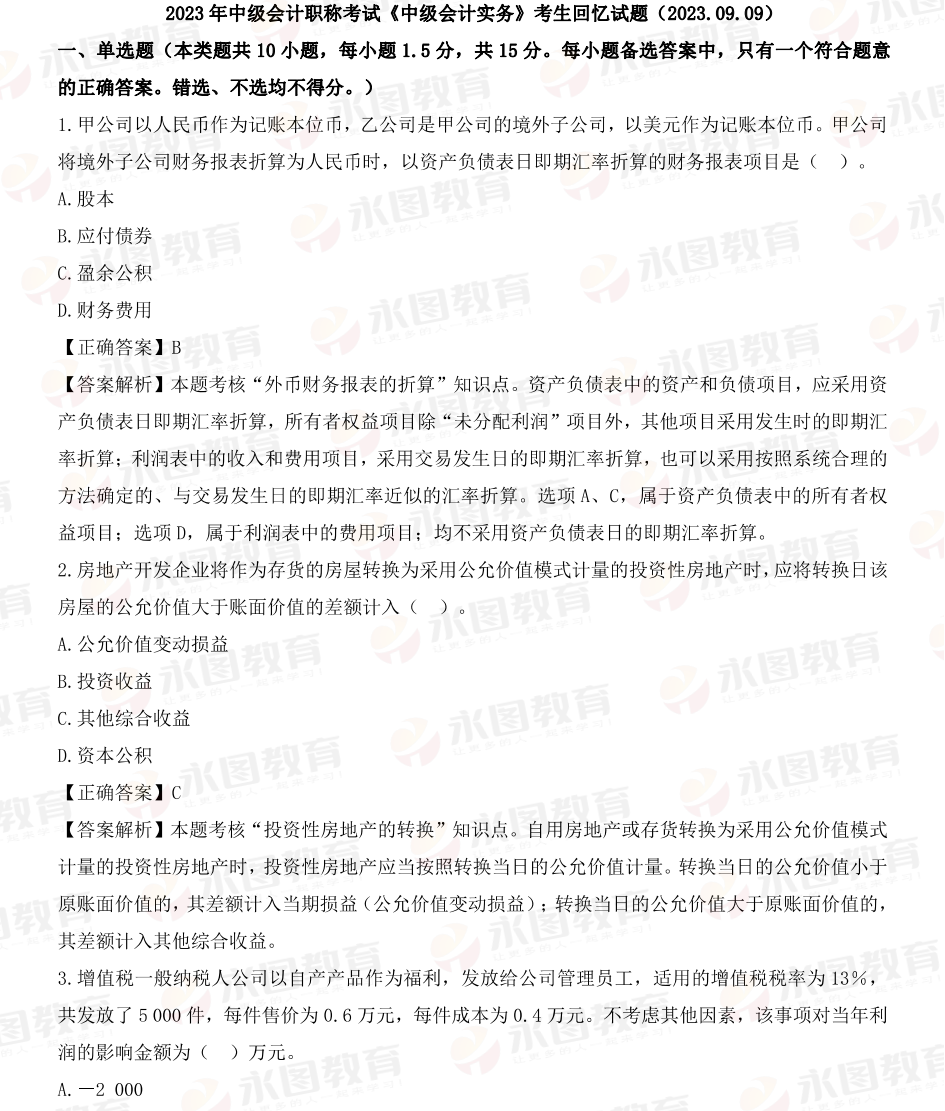 上一篇: 2023年中級(jí)會(huì)計(jì)《中級(jí)會(huì)計(jì)實(shí)務(wù)》考試真題答案(9月10日)