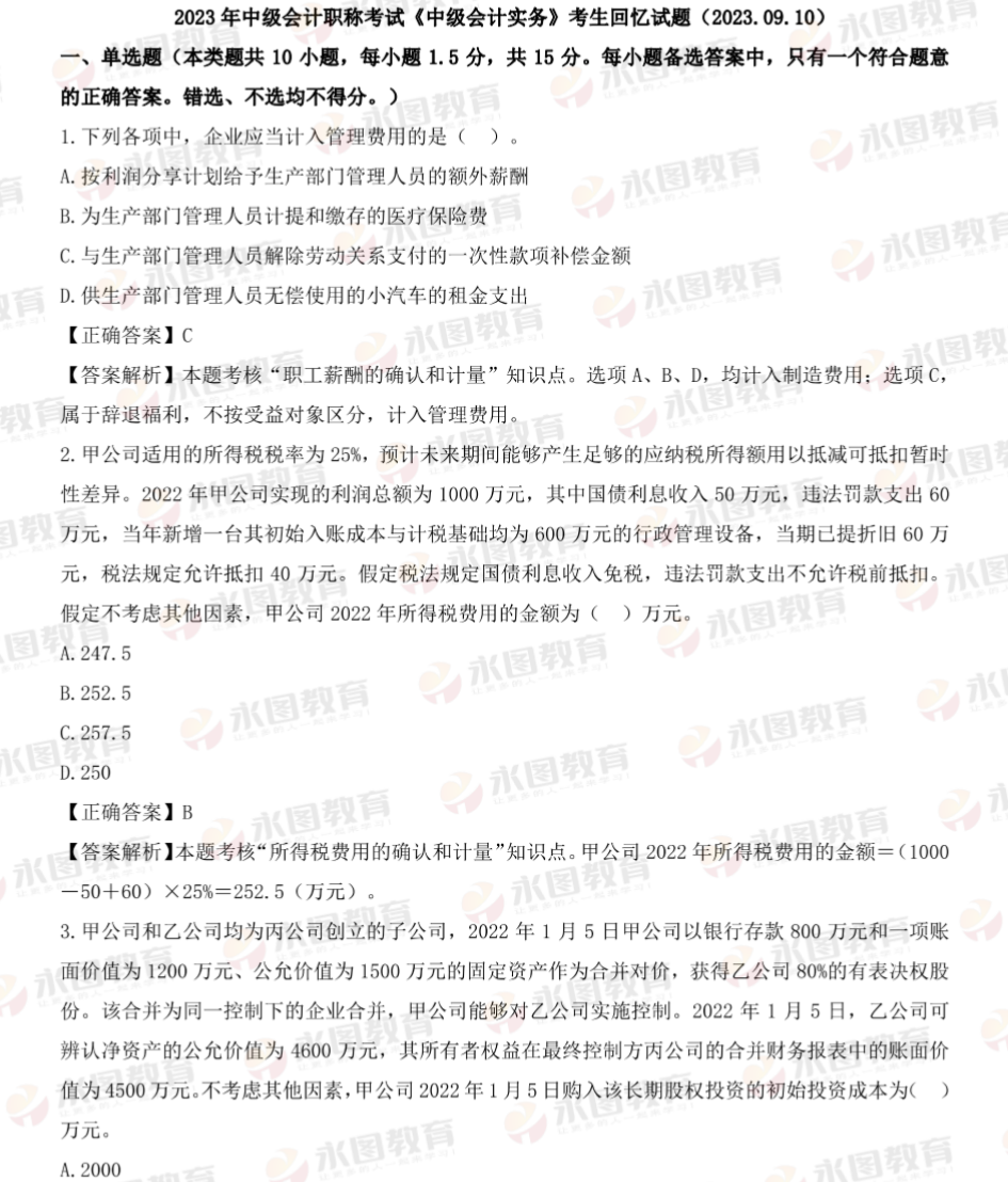 下一篇:2023年中級(jí)會(huì)計(jì)《中級(jí)會(huì)計(jì)實(shí)務(wù)》考試真題答案(9月9日)