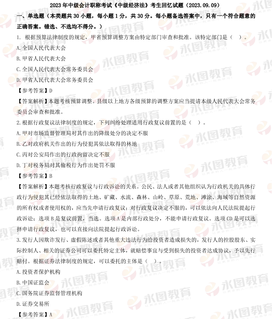 上一篇: 2023年中級(jí)會(huì)計(jì)《中級(jí)經(jīng)濟(jì)法》考試真題答案(9月10日)