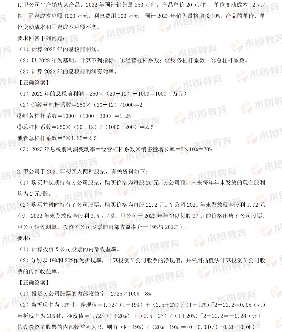 上一篇: 2023年中級會計《財務管理》考試真題答案(9月10日)