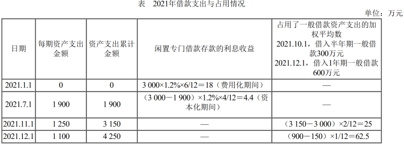 2021年借款支出與占用情況如下(資本化期間為2021年7月1日至2021年12月31日):