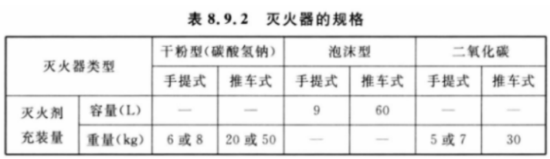 解析:8.9.2生產(chǎn)區(qū)內(nèi)設(shè)置的單個滅火器的規(guī)格宜按表8.9.2選用。