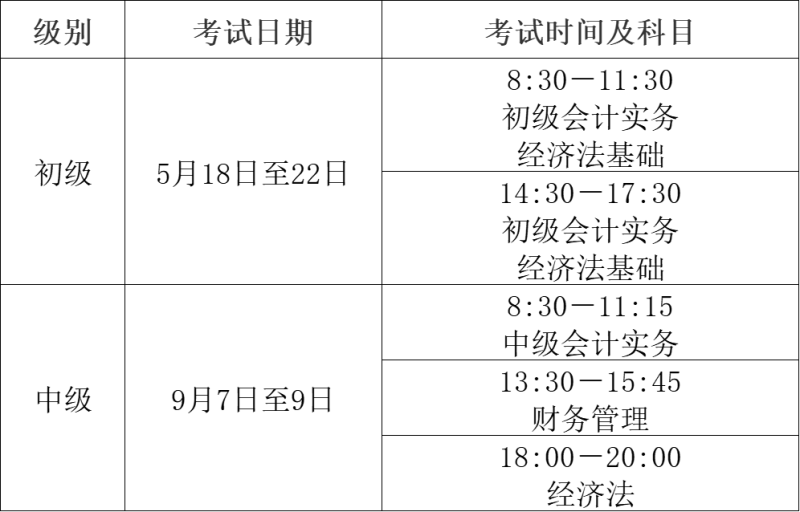 (一)考試時間 >>>中級會計報名資格一鍵查詢>>>