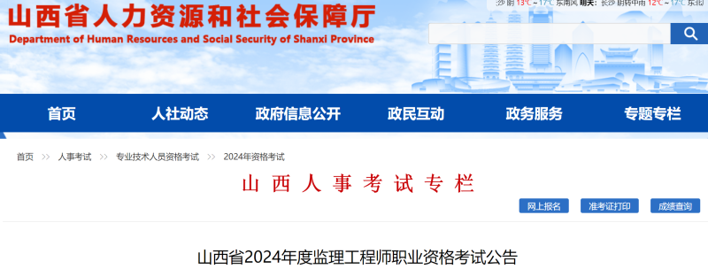 根據(jù)《山西省人事考試中心 關(guān)于山西省2024年度監(jiān)理工程師職業(yè)資格考試考務(wù)工作的通知》(晉人考函〔2024〕5號(hào))安排,現(xiàn)將有關(guān)事項(xiàng)公告如下: