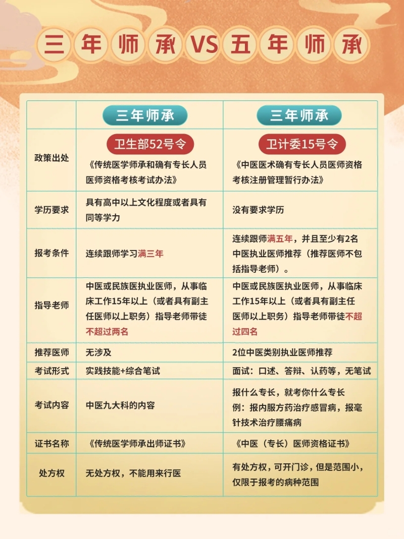 現(xiàn)在我們來看看三年師承和五年師承的詳細(xì)區(qū)別圖文: