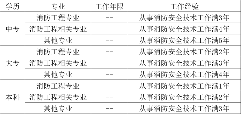 三、二級(jí)消防工程師-報(bào)考工作年限要求
