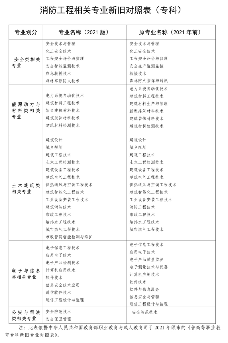 全國消防工程相關(guān)專業(yè)新舊對照表(本科)