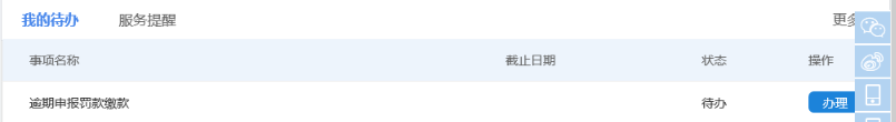 電子稅務(wù)局自動(dòng)在辦稅桌面“我的待辦”欄,為納稅人推送待辦事項(xiàng),提醒納稅人辦理逾期申報(bào)、簡易處罰或罰款繳納:
