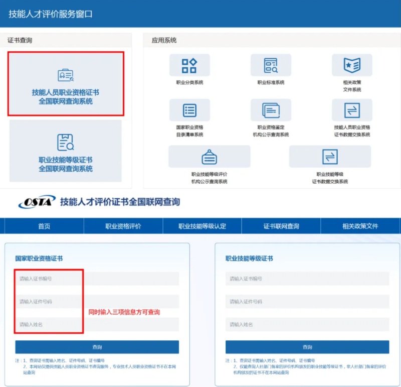 技能人員職業(yè)資格證書全國(guó)聯(lián)網(wǎng)查詢系統(tǒng)