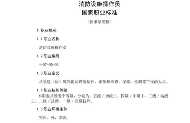 2019年版:明確分為“消防設(shè)施監(jiān)控操作”和“消防設(shè)施檢測維修保養(yǎng)”兩個(gè)職業(yè)方向,且等級覆蓋不同(如監(jiān)控操作方向最高為二級/技師,檢測維修保養(yǎng)方向從四級/中級工起步)。