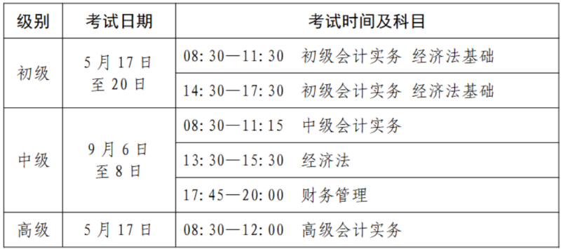 (二)初級(jí)和高級(jí)會(huì)計(jì)資格考試考務(wù)日程安排