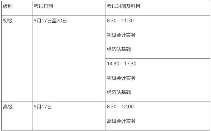 (四)2025年5月17日至20日組織初級會計(jì)資格考試,5月17日組織高級會計(jì)資格考試。